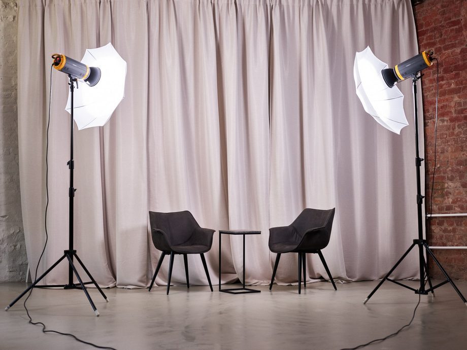 И еще один прекрасный бонус для вас! В студии есть широкий ассортимент мебели и дополнительного реквизита: ткани, бумажные и холстовые фоны, светлая портьера, стулья, кресла. Поэтому вы легко сможете расположить съемочное пространство так, чтобы получилась наиболее эстетичная картинка.